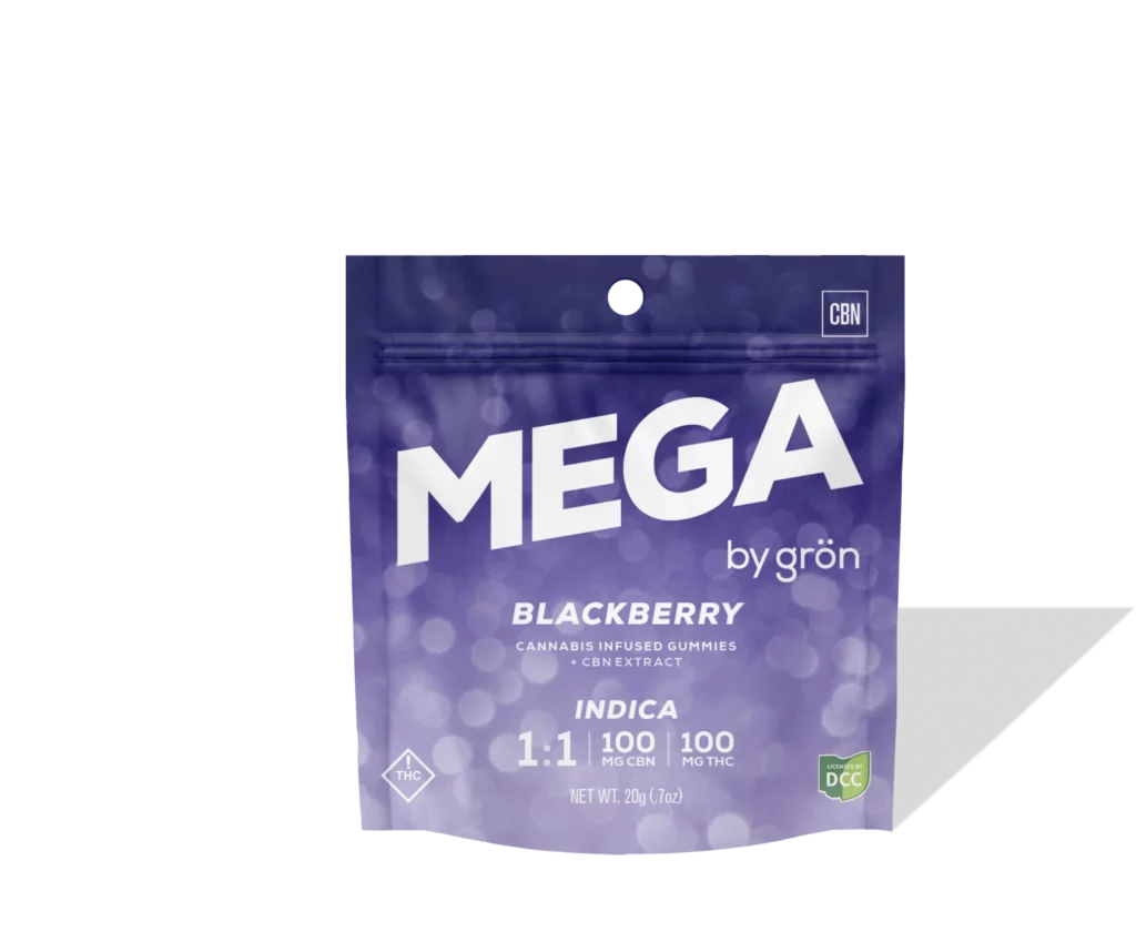 Our 1:1 Blackberry Mega is infused with CBN and THC and bursting with the sweet taste of freshly picked blackberries. *The form & ingredients of Megas may vary from state to state.