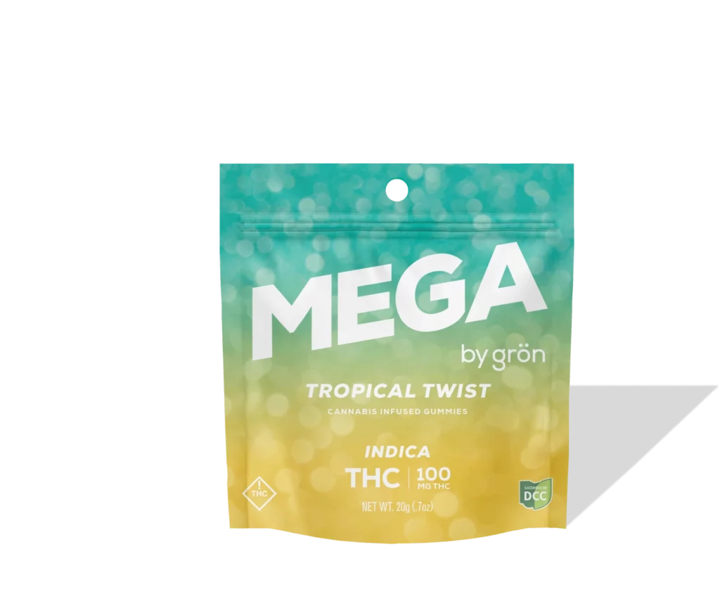 Our Tropical Twist Mega has the flavors of pineapple and coconut with mellow indica effects. Bon voyage. *The form & ingredients of Megas may vary from state to state.